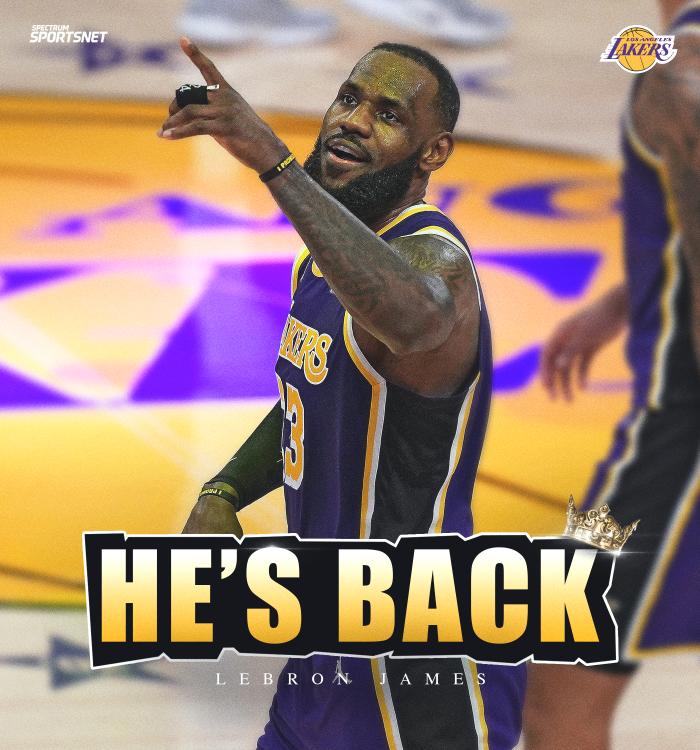 来源:JRS直播网05-01 11:13JRS直播网讯 湖人当家球星勒布朗-詹姆斯正式复出,伤停41天连续缺席20场比赛后,他终于伤愈复出;湖人官方晒出詹姆斯集锦,各种精彩扣篮以及巧妙助攻,发推写道:那个国王回来了;湖人官方还晒出詹姆斯赛前投篮照。