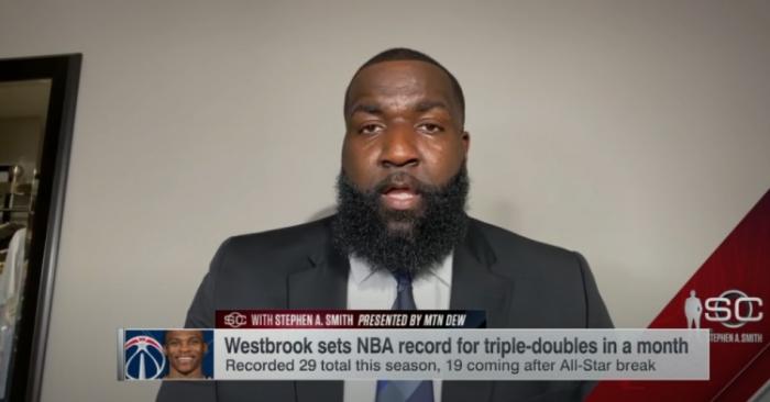 他表示“我们正在见证史上最具运动能力的控卫,当我将威少和现役其他的超巨对比时,他的比赛会给对手巨大压力并且极具爆发力。历史上只有少数球星的比赛会带来如此震撼,比如贾巴尔、乔丹,还有詹姆斯、字母哥和大O。我说爆发力并不是不尊重那些靠技术吃饭的球员,比如说大鸟。威少影响比赛的方式会沉重地打击到对手。对方必须限制他得分,限制他的篮板,限制他与队友的连接。而在防守端,威少的运动能力能锁住对手。在我看来,当威少退役时,历史前二十的某位球星得让位了。”
