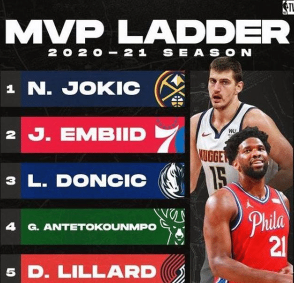 让东契奇排在约基奇和恩比德后面的,是战绩。独行侠只有西部第六,掘金西部第四,76人更是东部第二。
