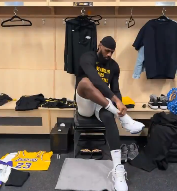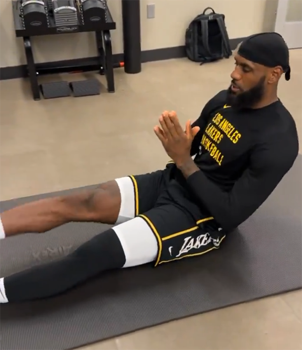 进入球馆后詹姆斯进行了一系列的备战工作——换上训练服后前往健身房,坐在瑜伽垫上拉伸热身,之后詹姆斯来到球场上进行训练,加练45度三分和底角三分,还完成了自拋自扣;训练之余,詹姆斯和湖人助教汉迪一起观看比赛录像以及讨论战术,老詹连连点头。