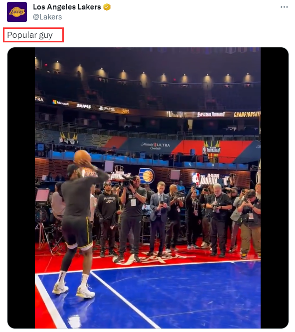詹姆斯热身时被众多记者围观跟拍,湖人官方晒出这一幕并且配文写道:受欢迎的家伙。