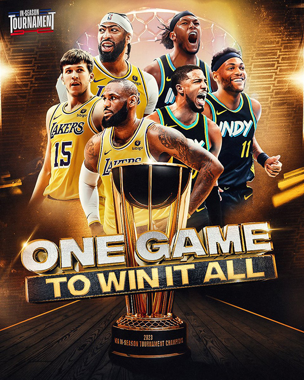 季中赛同样是6胜0负杀进决赛,湖人与步行者争夺史上第一个季中赛冠军奖杯;赛前,詹姆斯身穿牛仔外套、戴着墨镜、提着名牌包包乘坐豪车来到决赛球馆,提前3个小时入场。