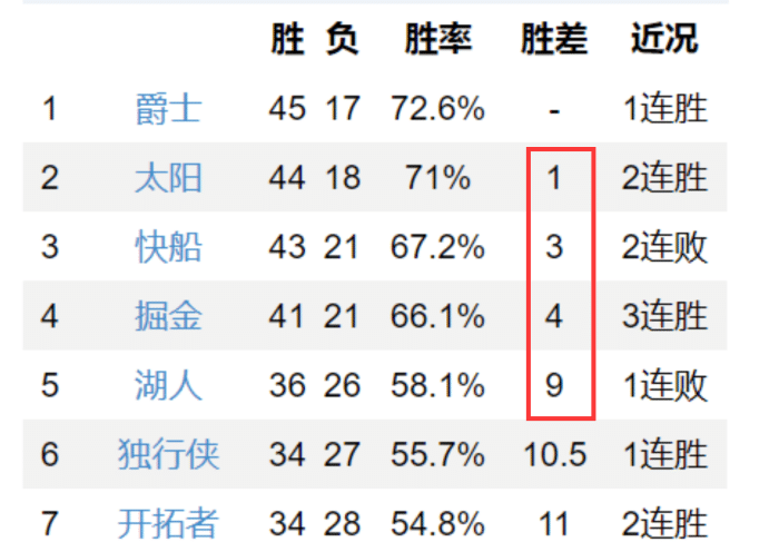 拿下这场胜利后,太阳领先快船再次来到2个胜场!而掘金因为取得3连胜,也只差快船1个胜场了!赛季打到现在,西部的排名实在太有意思了!