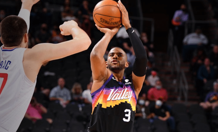 全场比赛,保罗乔治空砍25分10板,隆多9分7助攻。快船这边,德文布克21分,佩恩15分4助攻,卡明斯基13分,保罗则是15中10高效砍下28分10助攻3抢断,其中末节独得15分!再次证明了自己的价值,在这种大场面比赛中,CP3总能站出来带队获胜,尤其关键时刻的表现可以说无可挑剔!最后罚球时刻,太阳主场球迷也是齐喊MVP!确实,太阳能拿下这一战,保罗无疑是本场无可争议的MVP!