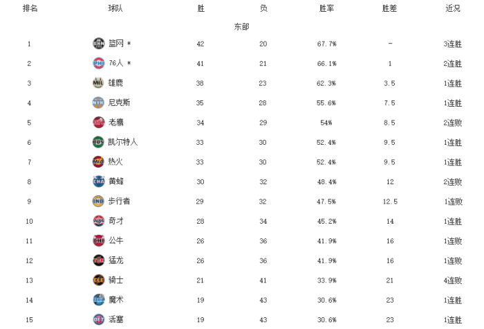 来源:JRS直播网04-29 11:28JRS直播网讯 今天NBA常规赛东部球队的比赛已经都结束了,东部的格局也发生了很大的变化,费城成为继篮网之后东部第二支、联盟第三支锁定季后赛席位的球队;猛龙输球奇才爆冷击败湖人,这样奇才稳居前十;热火击败马刺,这样东部卡位战的竞争也是相当激烈的。接下来我们看下东部的最新格局: