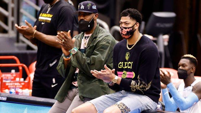 今天湖人对阵独行侠,詹姆斯又是坐在场边观战,镜头多次给到老詹,不过首节还没打完,詹姆斯扭头返回更衣室,可能是上厕所吧,因为没过多久,詹姆斯又回到场边。