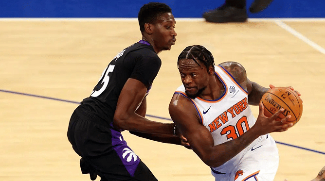 来源:JRS直播网04-25 16:21JRS直播网讯 今天NBA常规赛继续进行,纽约尼克斯延续他们的出色表现,主场120-103战胜猛龙,稳居东部前四。兰德尔连续两场比赛至少砍下30分10篮板的数据,也是尼克斯最近8年来第一人,上一个做到的是安东尼。同时九连胜也是尼克斯过去25年以来的第二连胜纪录,他们目前的战绩来到34胜27负,55.7%的胜率;再加上球队近期的强势表现,这个赛季最大的黑马堪称纽约尼克斯。