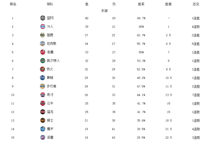 来源:JRS直播网04-25 16:09JRS直播网讯 NBA常规赛进行到现在,大部分球队都只剩下9-12场比赛了,这其中东部的格局已经越来越清晰了,篮网、费城和雄鹿争夺常规赛东部冠军,尼克斯和老鹰作为黑马搅局直通季后赛的前六名,而附加赛资格的席位也很明朗,猛龙和公牛掉队了,奇才强势逆袭。