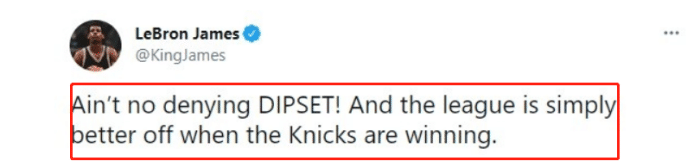 而詹姆斯在社媒上转发了一段说唱并表示:尼克斯赢球会让联盟变得更好。老詹的这番话很有道理,尼克斯是NBA豪门球队,最受关注的球队之一,过去很多年时间,尼克斯一直是鱼腩,经常被外界讽刺。如今,这支纽约球队彻底崛起了,对于NBA来说,这肯定有利处,会有越来越多的球迷去关注尼克斯。