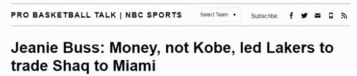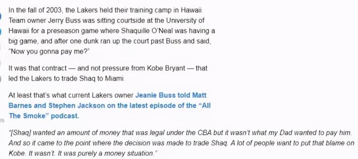 当年为什么交易走奥尼尔?珍妮巴斯:纯粹是因为钱,而不是因为科比!