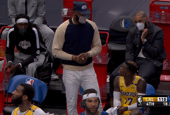 詹姆斯真领袖,因伤无法出战,但他随时准备安慰队友,上半场浓眉下场时,心情沮丧,用脚踢场边广告牌,当时詹姆斯第一时间走过来,安慰浓眉,如此心系队友,三旬老汉不愧球队真老大。
