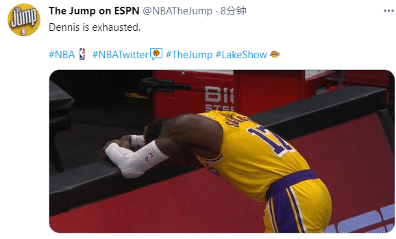 施罗德不仅得分,而且送出13次助攻串联全队,终场前18秒,湖人主力后卫施罗德六犯毕业,当时沃格尔申请教练挑战,最终挑战失败,施罗德无奈犯满毕业;本场比赛,施罗德出战37分钟,全场最高,当他趴在场边的桌子上时,美媒发推写道:施罗德已经筋疲力竭。
