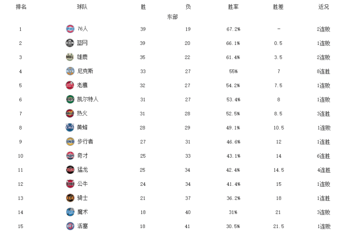 东部最新排名!篮网无缘登顶,尼克斯8连胜升前四,奇才杀入前十