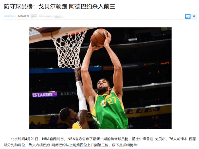 NBA官网更新最佳防守球员榜单:字母哥仅排第四,戈贝尔力压西蒙斯!