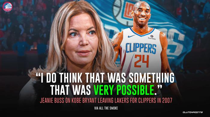 湖人美女老板珍妮-巴斯透露,科比曾穿着一件快船配色的球衣打比赛,她认为当时科比极有可能加盟快船;这只是一件旧事,不过众所周知,科比20年生涯全都为湖人效力,穿过湖人8号和24号,这两件球衣都已被湖人退役。