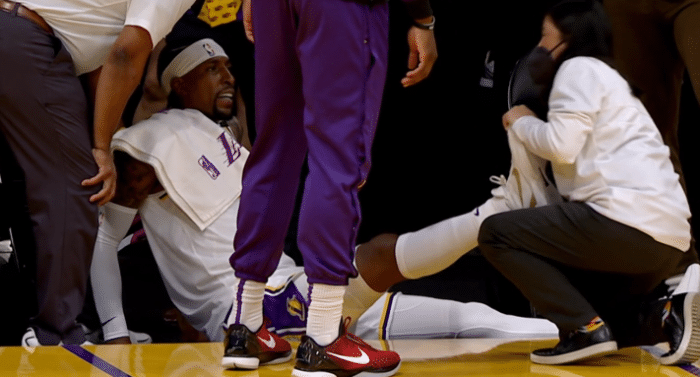 终场前57.8秒,波普上篮时腿下一软,捂着小腿坐在地板上,表情痛苦,湖人队医赶紧冲过来,詹姆斯也第一时间走过来,一直站在波普旁边;然后波普坐在场边休息,赢球后波普一瘸一拐返回更衣室;赛后名记Mike Trudell报道,湖人官方证实波普小腿无碍,仅仅只是右小腿抽筋而已。