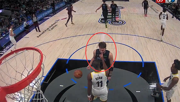 末节独行侠继续把爵士按在地板上摩擦,期间镜头拍到东契奇身穿训练服离场,返回更衣室期间与球迷击掌;之后东契奇坐回替补席继续观战。