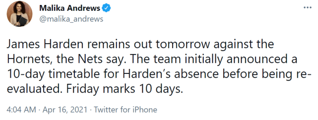 哈登养伤10天仍未复出!两大主力回归战黄蜂,蔡崇信发推感谢阿德