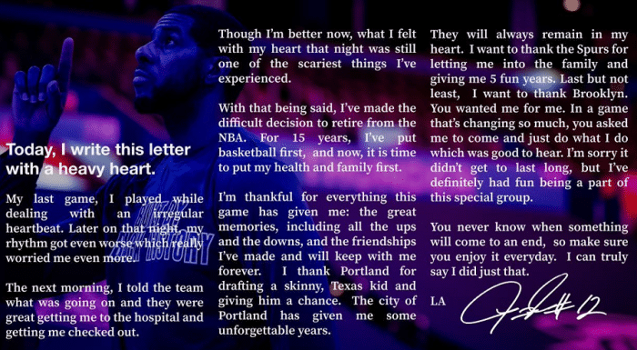 来源:JRS直播网04-16 11:58JRS直播网讯 篮网球星阿德在社交媒体上宣布退役,这是NBA最重磅的话题,从被马刺买断到为了冲击总冠军的梦想来到篮网时间还不长,阿德就宣布了退役,原因依旧是长期困扰他的心脏问题。阿德的心脏问题从他的新秀赛季就一直开始困扰着他,根据阿德社交媒体上的言论称,11日和湖人的比赛中,他感到了心脏非常不适,赛后更加严重,所以出于健康的原因,宣布退役。很快篮网总经理肖恩-马克斯发表声明,球队支持阿德的决定,同时给这位七届全明星球员送上了祝福。