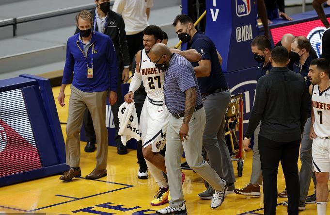 对阵勇士队,其实脚踝有伤的穆雷完全没有必要上场,毕竟季后赛对于他们来说,问题已经不大了,可是奈何掘金玩火自焚,穆雷不仅成为了库里50+的背景墙,还遭遇了严重的伤病。