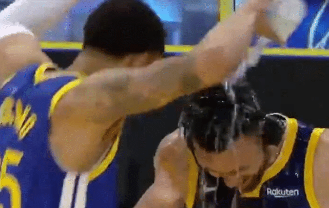 赛后,库里在场边接受采访时,队友托斯卡诺·安德森和贝兹莫尔来到一旁,往他身上狂浇水。库里被浇了一个透心凉,看得出来勇士全队都非常兴奋。库里对于超越张伯伦也显得非常谦逊,他表示:任何时候你听到张伯伦的名字,你都觉得他的纪录是不可逾越的,他在勇士只打了6年,得分就队史第一了。