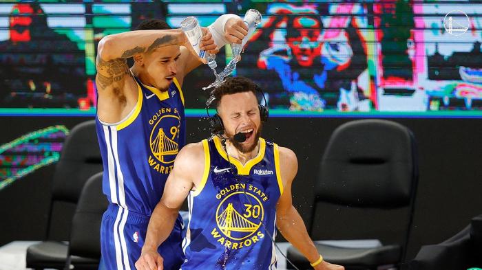 库里不仅被安德森疯狂浇水,贝兹莫尔也上来浇了一瓶水