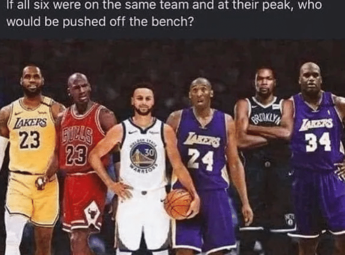 来源:JRS直播网04-13 16:10JRS直播网讯在NBA历史上,有很多伟大的球星,而对于一支球队来说,首发只能有5人。就拿梦八来说,强如韦德,保罗,德隆等伟大球星,也只能担任替补,不是他们不好,而是首发球员都太厉害了。就在近日,美媒发问,詹姆斯和乔丹,科比,库里,奥尼尔,杜兰特这6人如果在同一支球队,谁打替补?很显然,美媒这是在挑事情,找一些话题来吸引关注,不过,这套6人阵容,如果真要选出首发5人,还真的不是一件容易的事情。