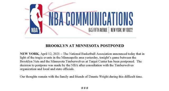来源:JRS直播网04-13 11:42JRS直播网讯北京时间4月13日,NBA官方宣布,鉴于昨天在明尼阿波利斯地区发生的悲惨事件,今晚(当地时间)布鲁克林篮网队和明尼苏达森林狼队在标靶中心的比赛将推迟进行。比赛延期的决定,是NBA在征询森林狼队以及当地官员后做出的,在公告中,联盟还对当特-赖特的家人和朋友致以哀思。