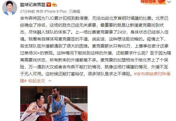 此前有消息称麦克瑞的薪水是150万美元,考虑到他是常规赛中后期才来到首钢,不少人觉得这样的薪水太高了,而现在根据知名记者贾磊的报道,称麦克瑞的年薪其实是60万美元,这样的薪水再加上他的能力、给首钢的补充,堪称是物美价廉。