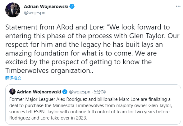 来源:JRS直播网04-11 15:59JRS直播网讯明尼苏达森林狼就要被卖掉了,据ESPN名记沃纳罗斯基报道,三届MLB的MVP得主罗德里格斯和电子商务巨头马克-洛尔已经与森林狼老板格伦-泰勒签下一份意向书,二人斥资15亿美元将接替泰勒成为森林狼的新老板。