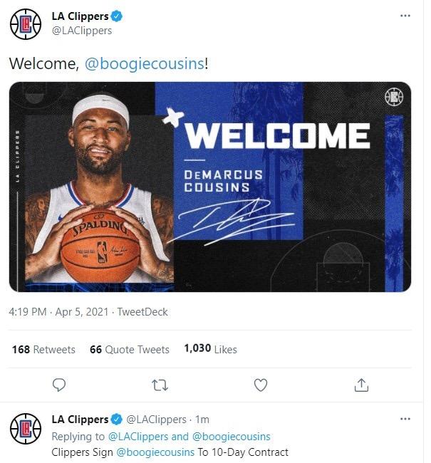 第四次成为队友!快船官方宣布和考辛斯签下合同,隆多:来了,老弟!