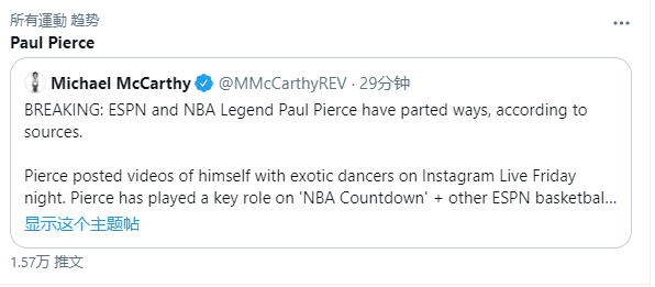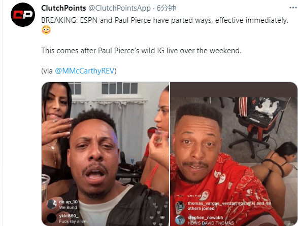 ESPN解雇皮尔斯!带脱衣舞娘直播太疯狂,绿军名宿回应一脸苦笑
