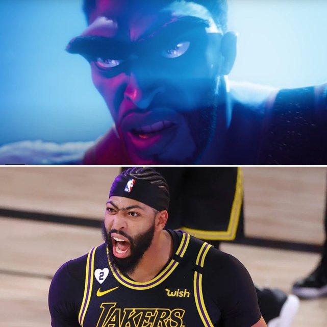 浓眉的卡通形象,特点也在他的眉毛上。至于WNBA明星陶乐西则是白曼巴的造型,预告片中,她有幻化成蛇的场景。