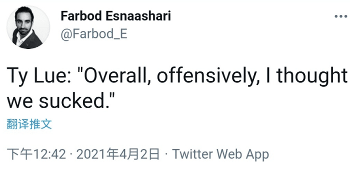 比赛结束之后快船主帅泰伦卢接受采访,他明确表示球队下半场的努力应该是球队在开局阶段打出的状态,“总的来说,我认为我们的进攻很糟糕。”同时卢指导表示球队按照了自己想要的方式执行战术,但就是没能命中出手,而且追分状态出现得太晚了。