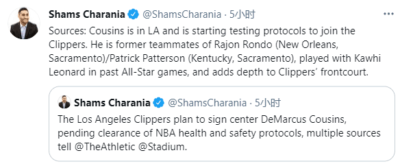 此前火箭裁掉考辛斯,他在失业期间一直苦练保持状态,如今快船计划给他一份10天短合同,由于考辛斯要接受联盟防疫协议,预计双方要到下周才能正式签约。
