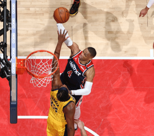 首先威少在此役拿下三双后,本赛季已经拿到了16次三双,单赛季15次三双是奇才队史三双纪录,威少仅仅用了38场就成功破纪录,这个男人真的是为三双而生