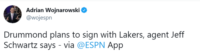 来源:JRS直播网03-29 16:10JRS直播网讯 北京时间3月29日,据ESPN记者沃纳罗斯基报道,经纪人施瓦茨透露,德拉蒙德已经决定签约洛杉矶湖人。他将联手詹姆斯、浓眉冲击总冠军。湖人终于得到球队的头号引援目标,而之前他们的东部对手篮网已经在买断市场上先后签下格里芬和阿尔德里奇。庄神的加盟,让湖人卫冕希望大增。