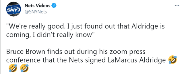 布朗就太逗了。当记者询问阿德的相关问题时,布朗一脸懵,询问工作人员后才知道阿德加入球队。他笑着对记者说:“我们太棒了。我刚知道阿德要来,我之前还不知道这件事。”
