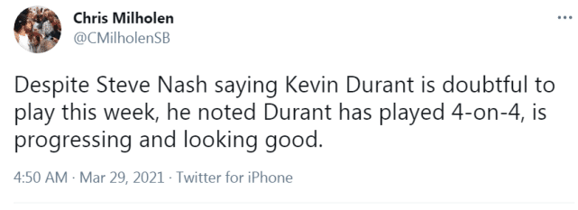 欧文复出战森林狼!杜兰特至少再缺席一周,纳什:他已参加4v4训练
