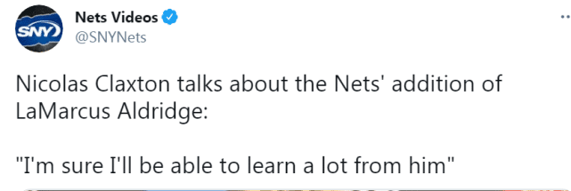 篮网的克拉克斯顿和布鲁斯-布朗都在训练后接受了采访。谈到阿德加入球队,克拉克斯顿表示:“我敢肯定我能从他身上学到很多东西。”不过,克拉克斯顿的出场时间应该会随着阿德进入轮换而减少。