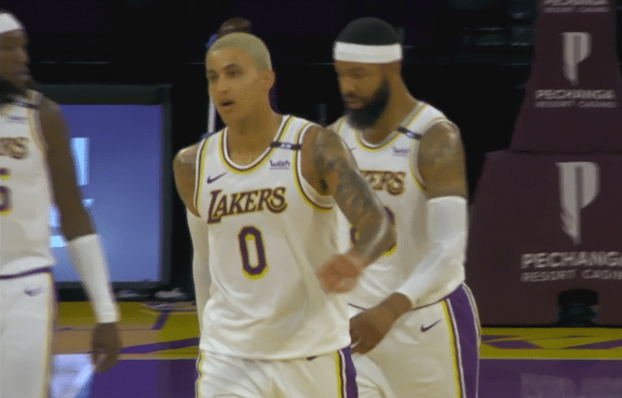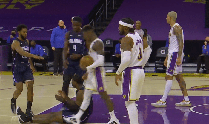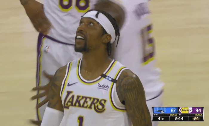 第三节的比赛开始后,湖人这边进攻端陷入停滞,魔术一波7:2的小高潮打停湖人,这段时间湖人退防做得不好,而且被对手抢到了太多的篮板,暂停回来湖人用哈雷尔换下了小加索尔,库兹马三分,哈雷尔暴扣,大莫连得5分,湖人再次夺回了领先优势,比赛末段魔术再次追平比分,三节打完两队打成69平,这开了的比赛湖人在防守端做得不好,他们让魔术队在单节得到了30分,而在进攻端自己得到了25分。