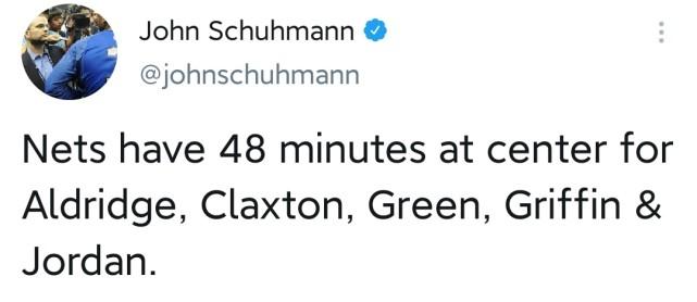 官网记者John Schuhmann写道:“篮网能打中锋的有阿尔德里奇、克拉克斯顿、格林、格里芬和小乔丹,他们将分配五号位的48分钟。”当然,其中一些球员可以打四号位。这也充分说明了篮网的兵强马壮,等到欧文和杜兰特回归后,这套阵容确实很有冲冠的希望。目前篮网的夺冠赔率高居联盟第一,成为大家最看好的夺冠热门。