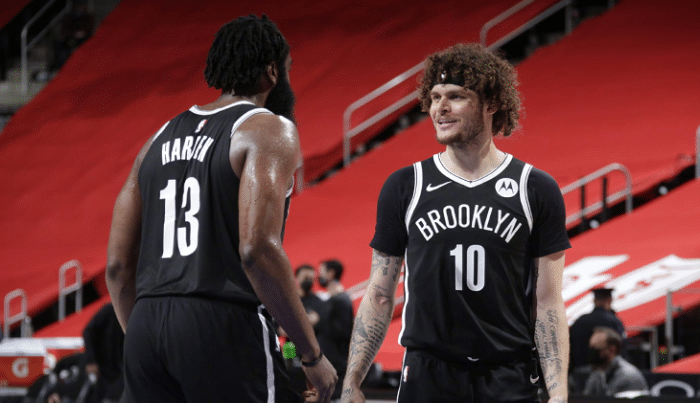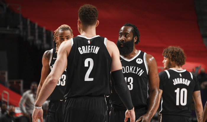 下半场,第三节哈登虽然单节得到13分,但还是展现出一些疲惫,比如上篮被格兰特封盖,防守让艾灵顿捞到三次罚球的机会。同时哈登还和杰夫格林配合失误,格林的传球以为哈登要溜底线,结果传跑没有一致。好在这一节尾声阶段哈登连续罚球和三分球,篮网保持4分优势。
