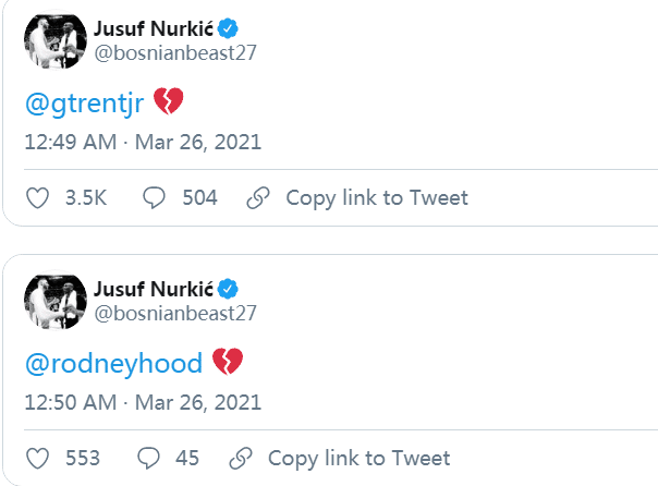 开拓者将小加里-特伦特和胡德送至多伦多,换来近况甚佳的诺曼-鲍威尔。开拓者中锋努尔基奇分别艾特两位昔日的队友,并连续发出心碎的表情。和关系很好的队友分开,显然是一种心痛的感觉。麦科勒姆也发文写道:“没有胡德,我们永远没有机会体验分区决赛。特伦特,我们会想你的,兄弟。”