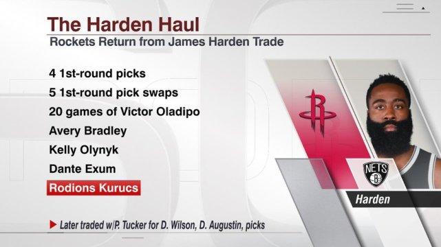 当初,火箭在涉及哈登的一笔四方交易中得到奥拉迪波,如今又把奥迪送走,哈登的交易究竟为他们带来了怎样的回报?ESPN晒出了一张图片(下图),哈登累计换回了4次首轮签,5个首轮互换权,奥拉迪波的20场比赛,布拉德利、奥利尼克、埃克萨姆和库鲁茨,其中,库鲁茨已经和塔克打包交易换来了威尔森、奥古斯丁和选秀签。
