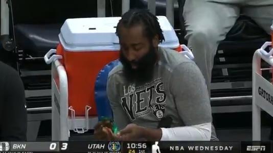 来源:JRS直播网03-25 19:38JRS直播网3月25日讯今天篮网对阵联盟第一爵士的比赛,哈登因颈部酸痛不打,但他还是来到场边观战时并悠闲地吃起了小零食。