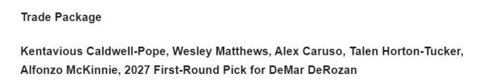 美国知名体育媒体《FW》专栏记者Kyle Daubs以此撰文分析,建议湖人在留下哈雷尔和施罗德两新援情况下,打包送走波普、马修斯、卡鲁索、塔克、麦金尼和2027年首轮选秀权,这样就足于打动马刺管理层,从而换来德罗赞。