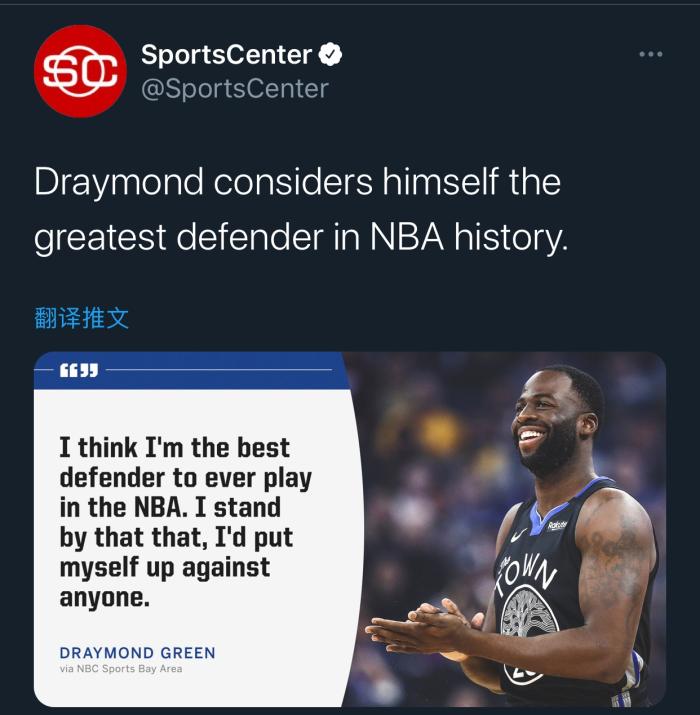 来源:JRS直播网03-24 19:38JRS直播网3月24日讯 星期三,金州勇士队前锋德雷蒙德-格林在接受播客媒体DUBS TALK采访时,对媒体人Grant Liffmann和Kendra Andrews表示,“我是NBA历史上最出色的防守者,100%的确定。”