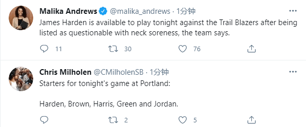 来源:JRS直播网03-24 11:30JRS直播网3月24日讯 篮网和开拓者大战赛前,球队官方宣布哈登继续出战,此前哈登因颈部酸痛被列为出战成疑(50%上场可能性),如今31岁哈登拒绝轮休,带伤对阵开拓者双枪,这一次哈登又是单核带队,欧文因个人原因暂时离队,杜兰特也没有随队出征三连客。