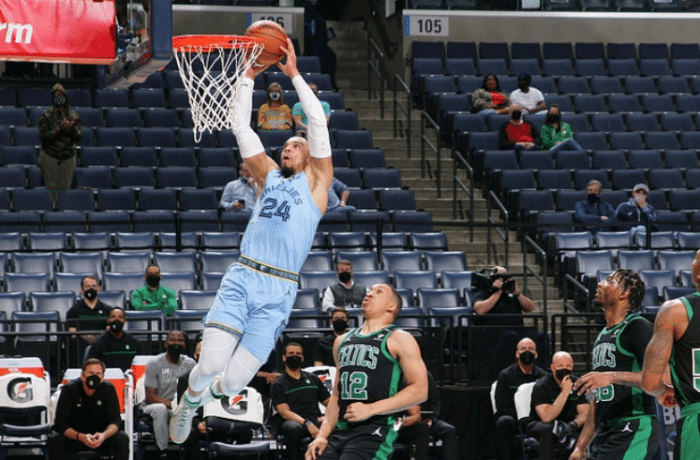 此役之前,凯尔特人刚刚终结了3连败,不过赢下魔术也并不是什么太值得夸耀的事情。此役面对灰熊,绿军也开启了4连客之旅。比赛中,双方一直打得比较胶着。不过来到第四节,灰熊率先将比分拉开。凯尔特人末段连续追分,终于在最后时刻凭借斯马特和泰斯的进球将比赛拖入加时。只可惜,在加时赛中狄龙和阿伦连中三分,凯尔特人也直接崩盘。